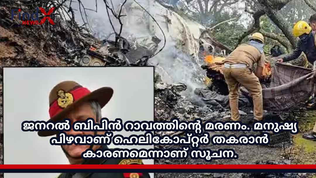 ന്യൂഡൽഹി: രാജ്യത്തെ ആദ്യ സംയുക്ത കരസേനാ മേധാവി ജനറൽ ബിപിൻ റാവത്തിൻ്റെ മരണത്തിനിടയാക്കിയ ഹെലികോപ്റ്റർ അപകടത്തിന് പിന്നിൽ മനുഷ്യ പിഴവാണെന്ന് ആരോപണം. പാർലമെൻ്ററി കമ്മിഷൻ്റെ റിപ്പോർട്ടിലാണ് ഇക്കാര്യം