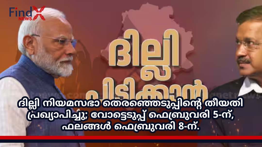 ദില്ലി നിയമസഭ തെരഞ്ഞെടുപ്പിന്റെ തീയതി കേന്ദ്ര തെരഞ്ഞെടുപ്പ് കമ്മീഷൻ പ്രഖ്യാപിച്ചു. ഫെബ്രുവരി 5ന് വോട്ടെടുപ്പ് നടക്കും, ഫെബ്രുവരി 8ന് വോട്ടെണ്ണൽ നടക്കുമെന്ന് കമ്മീഷൻ അറിയിച്ചു. എല്ലാ നടപടികളും