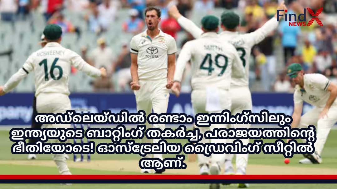 അഡ്ലെയ്ഡിൽ ബോർഡർ-ഗവാസ്കർ ട്രോഫിയിൽ ഇന്ത്യയ്ക്ക് തോൽവിയുടെ ഭീഷണി നേരിടുന്നു. ആദ്യ ഇന്നിംഗ്സിൽ 157 റൺസ് ലീഡ് നേടിയ ഇന്ത്യ, രണ്ടാം ഇന്നിംഗ്സിൽ കഠിനമായ പ്രതിസന്ധിയിലായിരിക്കുകയാണ്. അഡ്ലെയ്ഡിൽ രാത്രി-പകൽ ടെസ്റ്റിന്റെ രണ്ടാം ദിനം കളി നിർത്തുമ്പോൾ, ഇന്ത്യ അഞ്ചു വിക്കറ്റിന് 128 റൺസാണ് നേടിയത്. ഇപ്പോഴും 29 റൺസ് പിന്നിലാണ്. ക്രീസിൽ റിഷഭ് പന്ത് (28)യും നിതീഷ് കുമാർ റെഡ്ഡിയും (15) ഉണ്ട്. ഇന്ത്യയെ തകർത്ത് രണ്ട് വീതം വിക്കറ്റ് വീഴ്ത്തിയ സ്കോട്ട് ബോളണ്ട്, പാറ്റ് കമ്മിൻസ് എന്നിവരാണ്. മുമ്പ്, ഇന്ത്യയുടെ ആദ്യ ഇന്നിംഗ്സ് സ്കോർ 180ന് എതിരെ ഓസ്ട്രേലിയ 337ന് എല്ലാം പുറത്തായിരുന്നു. 140 റൺസ് നേടിയ ട്രാവിസ് ഹെഡ് ആണ് ടോപ് സ്കോറർ. മുഹമ്മദ് സിറാജ്, ജസ്പ്രിത് ബുമ്ര എന്നിവരാണ് നാല് വിക്കറ്റ് വീഴ്ത്തിയത്, ആറ് വിക്കറ്റ് നേടിയ മിച്ചൽ സ്റ്റാർക്ക് ആണ് ആദ്യ ഇന്നിംഗ്സിൽ മികച്ച പ്രകടനം കാഴ്ചവച്ചത്.